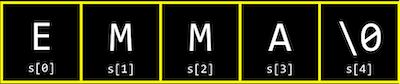 // *s 포인터 변수에 **"E"의 주소값을 저장(문자열의 첫 글자의 주소값)**