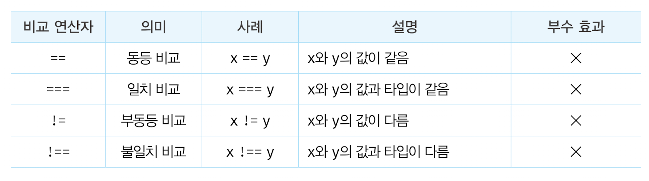 부수 효과가 있는 연산자는 할당 연산자(=), 증가/감소 연산자(++, --), delete 연산자다.