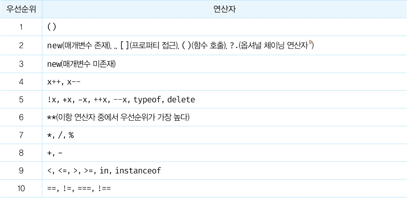 여러 개의 연산자로 이뤄진 문이 실행될 때 실행되는 순서가 있다. 우선순위가 높을수록 먼저 실행된다.